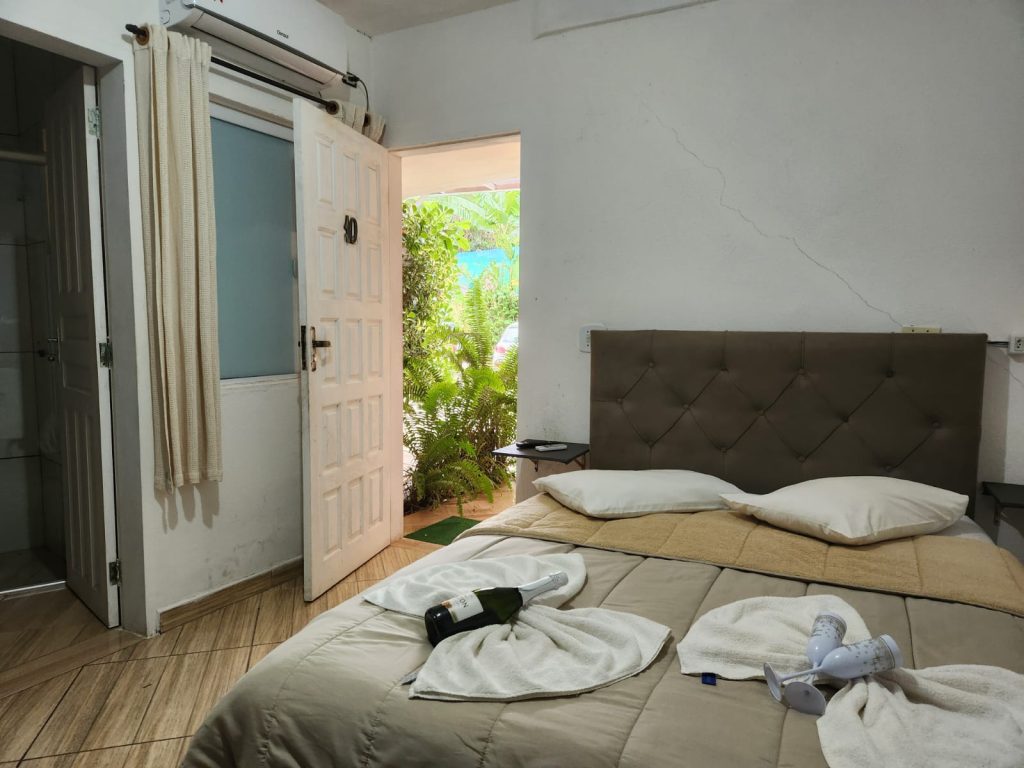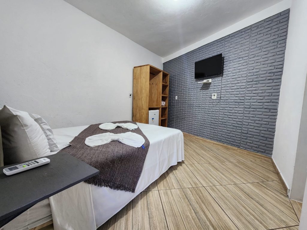 Duplo, Casal têm ar condicionado e ventilador de teto, frigobar e t.v da oi